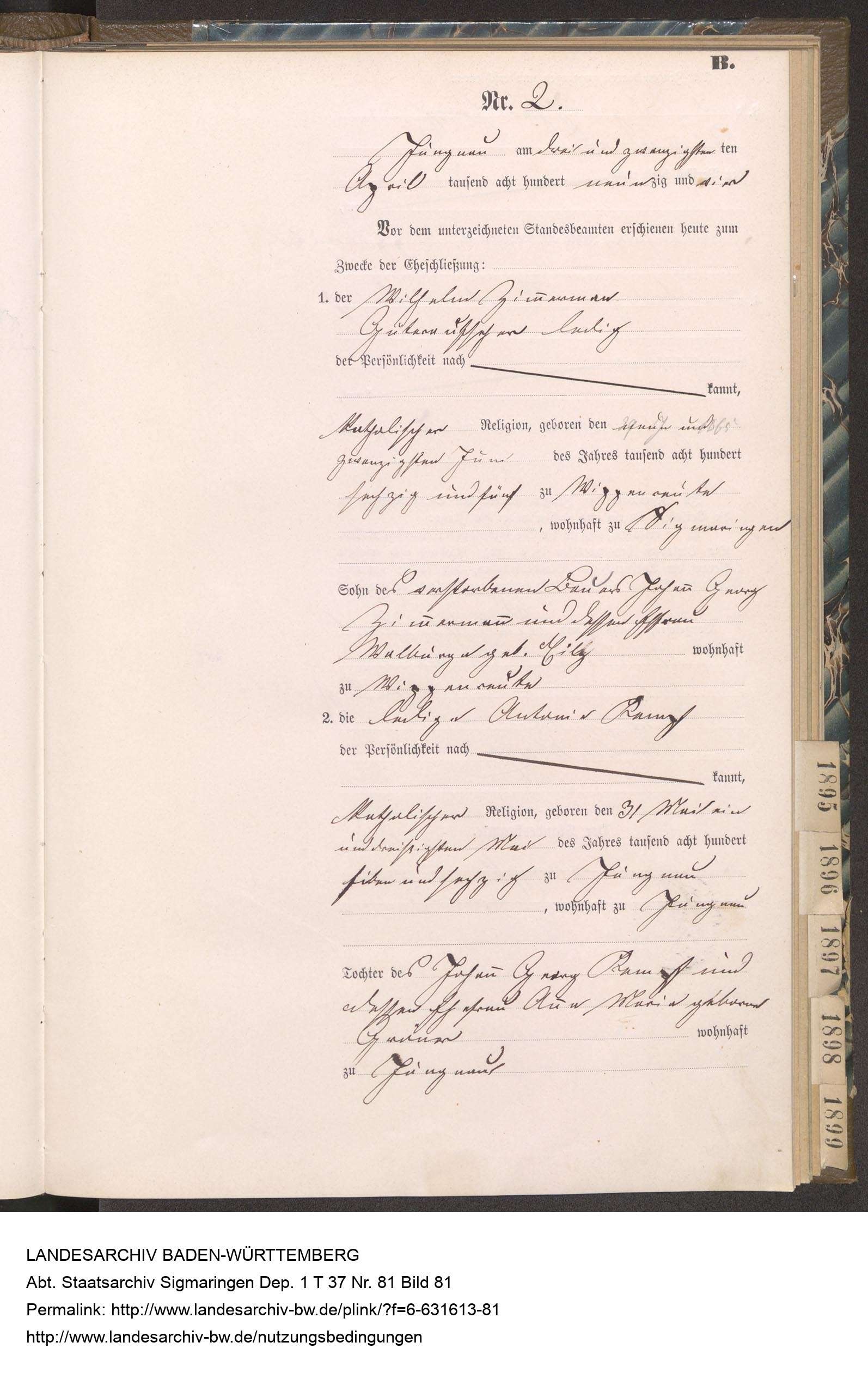 Antonia heiratete Wilhelm Zimmermann, Sohn von Johann Georg Zimmermann und Walburga Milz, am 23 Apr. 1894 in Jungnau, bei Sigmaringen. (Wilhelm Zimmermann wurde geboren am 29 Jan. 1865 in Ravensburg.) |