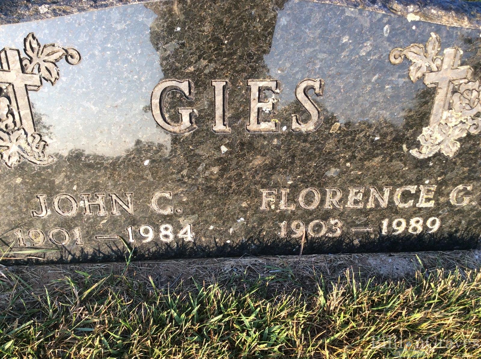 • Wohnort, 1935, Rural, McHenry, Illinois. Florence heiratete John Caspar Gies, Sohn von Henry Joseph Gies und Mary Kleiser. (John Caspar Gies wurde geboren am 6 Jan. 1901 in Eagle, Wisconsin, starb am 26 Dez. 1984 in Palmyra, Jefferson County, Wisconsin, United States of America und wurde bestattet in Saint Mary Cemetery, Palmyra, Wisconsin, United States.) |