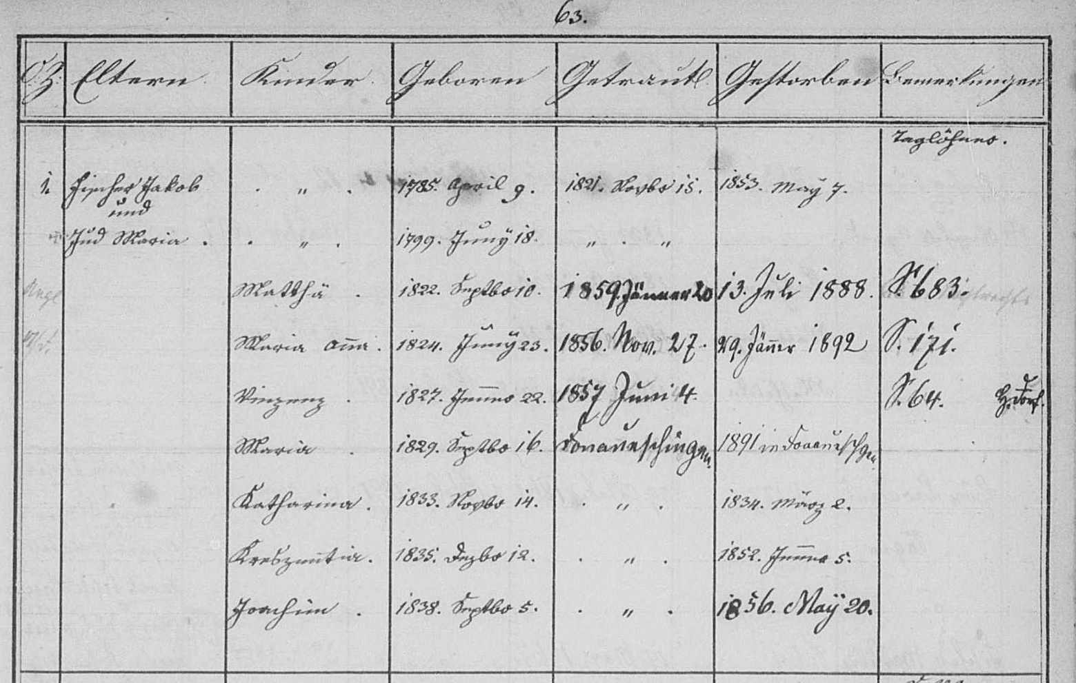 • Beruf: Taglöhner: Wolterdingen. Jacob heiratete Maria Jud am 21 Nov. 1821 in Wolterdingen. (Maria Jud wurde geboren am 18 Jun. 1799.) |
