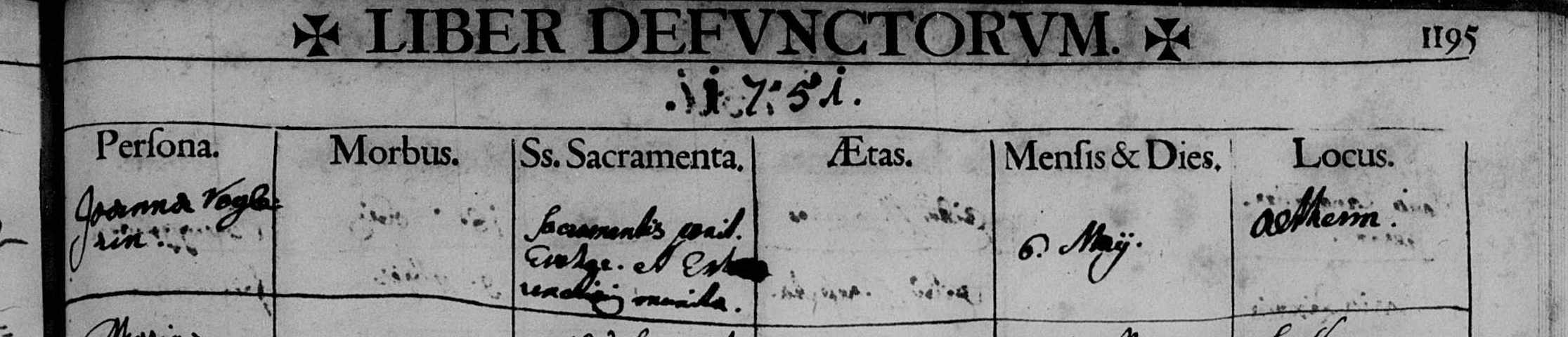 Johanna heiratete als nächstes Karl Stehele am 24 Apr. 1746 in Altheim. (Karl Stehele wurde geboren um 1718 in Kirnbach, Pfarrei Schönach und starb am 11 Feb. 1774 in Altheim.)