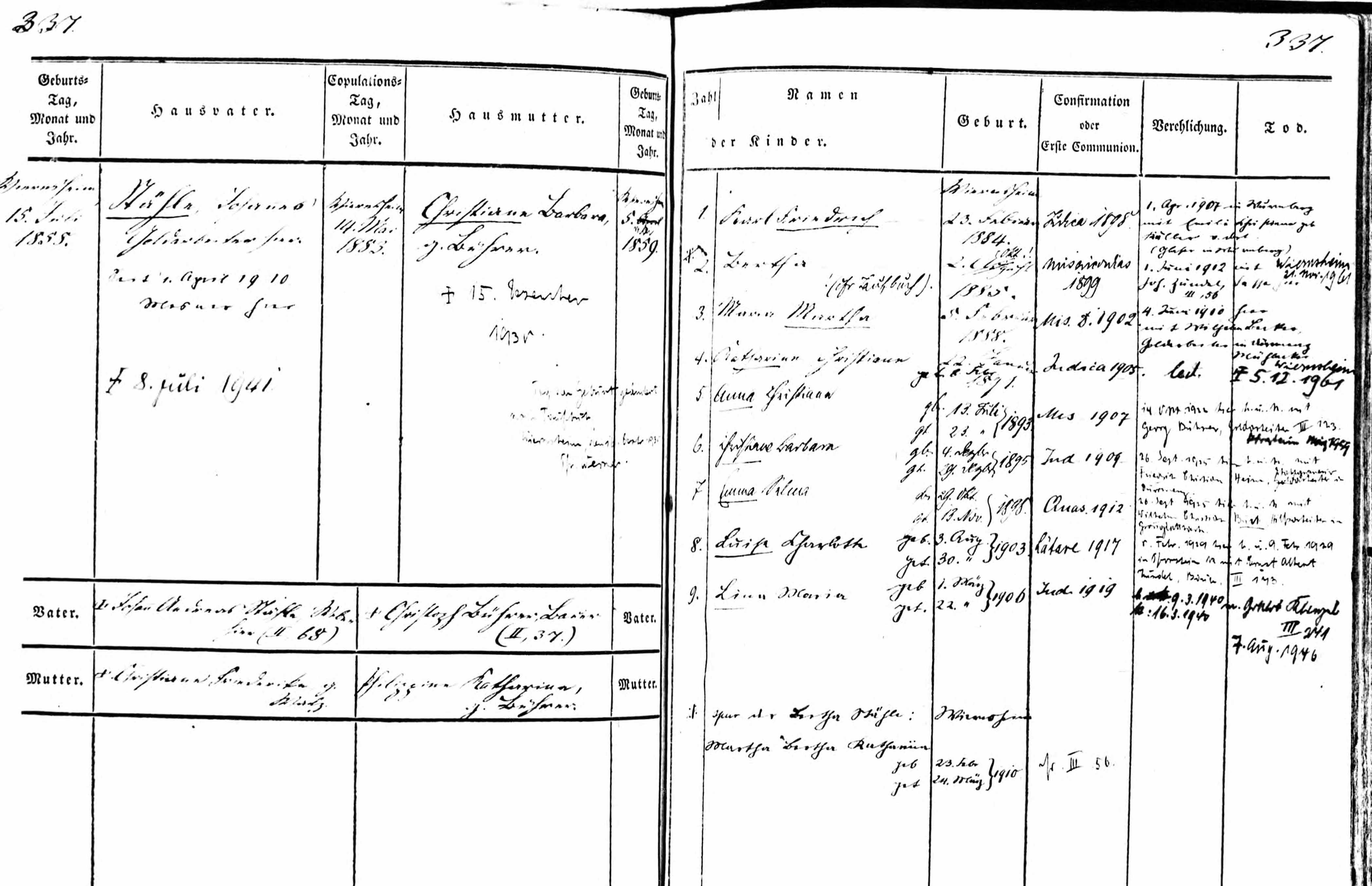 Christiana heiratete Johann Staehle, Sohn von Johann Andreas Staehle und Christiane Friederike Walz, am 14 Mai 1883 in Wiernsheim, Maulbronn, Neckarkreis, Württemberg. (Johann Staehle wurde geboren am 15 Jul. 1858 in Wiernsheim, Maulbronn, Neckarkreis, Württemberg.) |