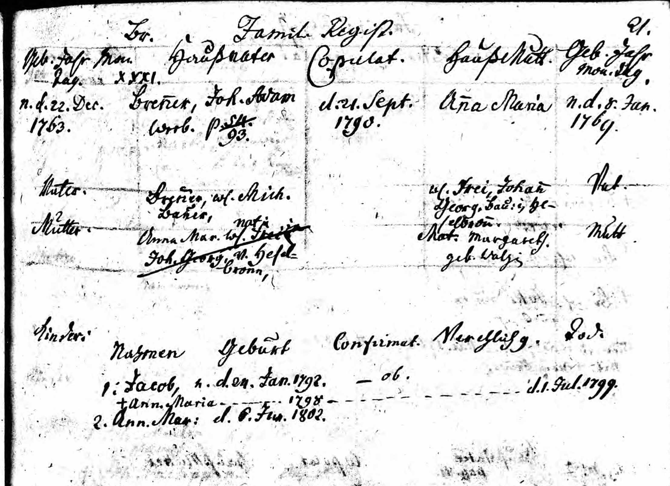 Ehe: 21 Sep. 1790 - Egenhausen, Schwarzwaldkreis, Wuerttemberg