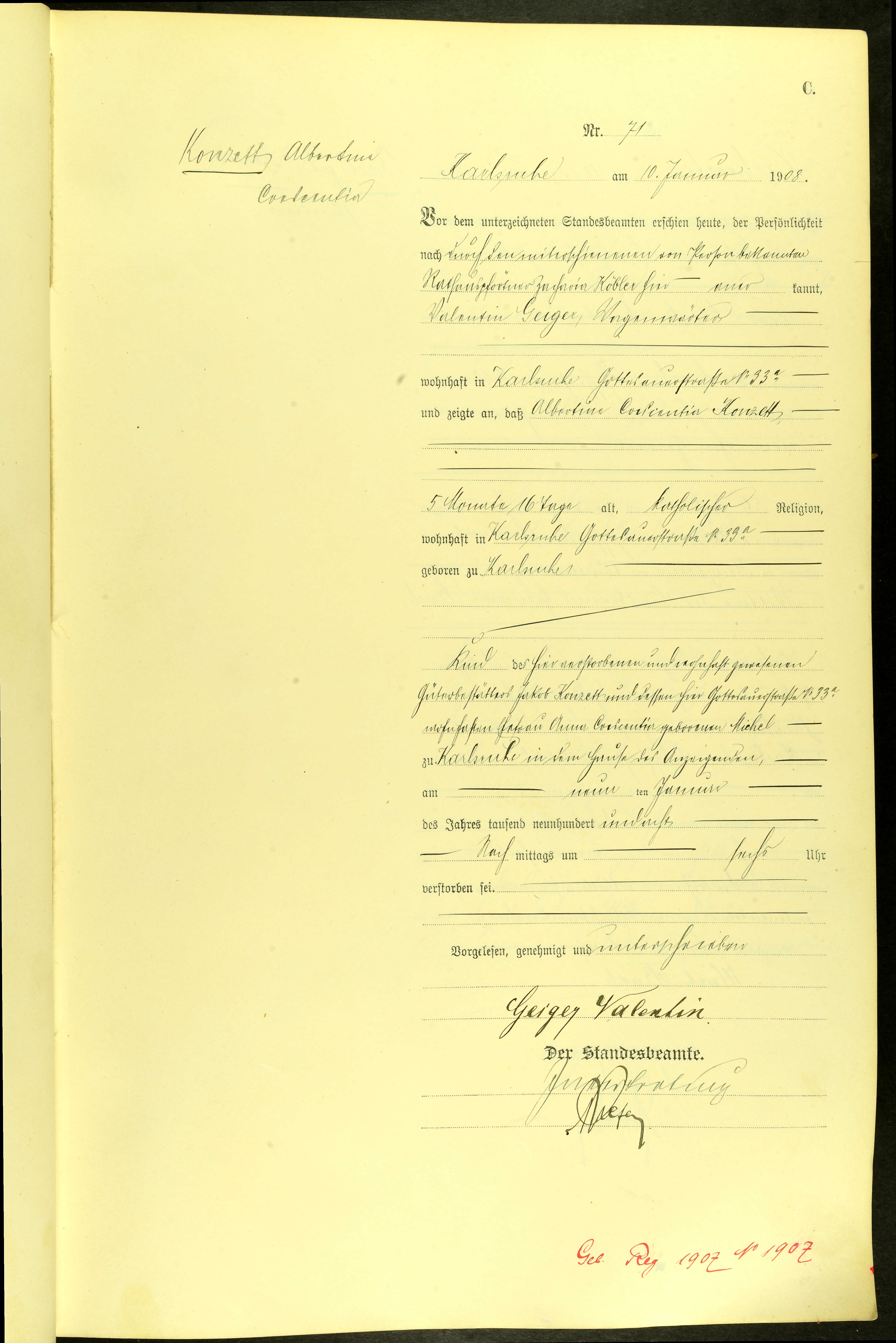 Geboren: 24 Jul. 1858 - Engelswies Getauft: 25 Jul. 1858 - Engelswies Gestorben: 9 Jan. 1907 - Karlsruhe Bestattet:Ehepartner: Katharina Schlegel Ehe: 3 Nov. 1883 - KarlsruheEhepartner: Anna Michel Ehe: 6 Okt. 1896 - Karlsruhe