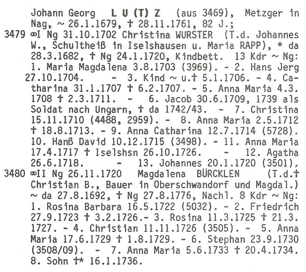 Weiterer Ehepartner: Anna Maria Luz - 17 Sep. 1709 - NagoldEreignisse