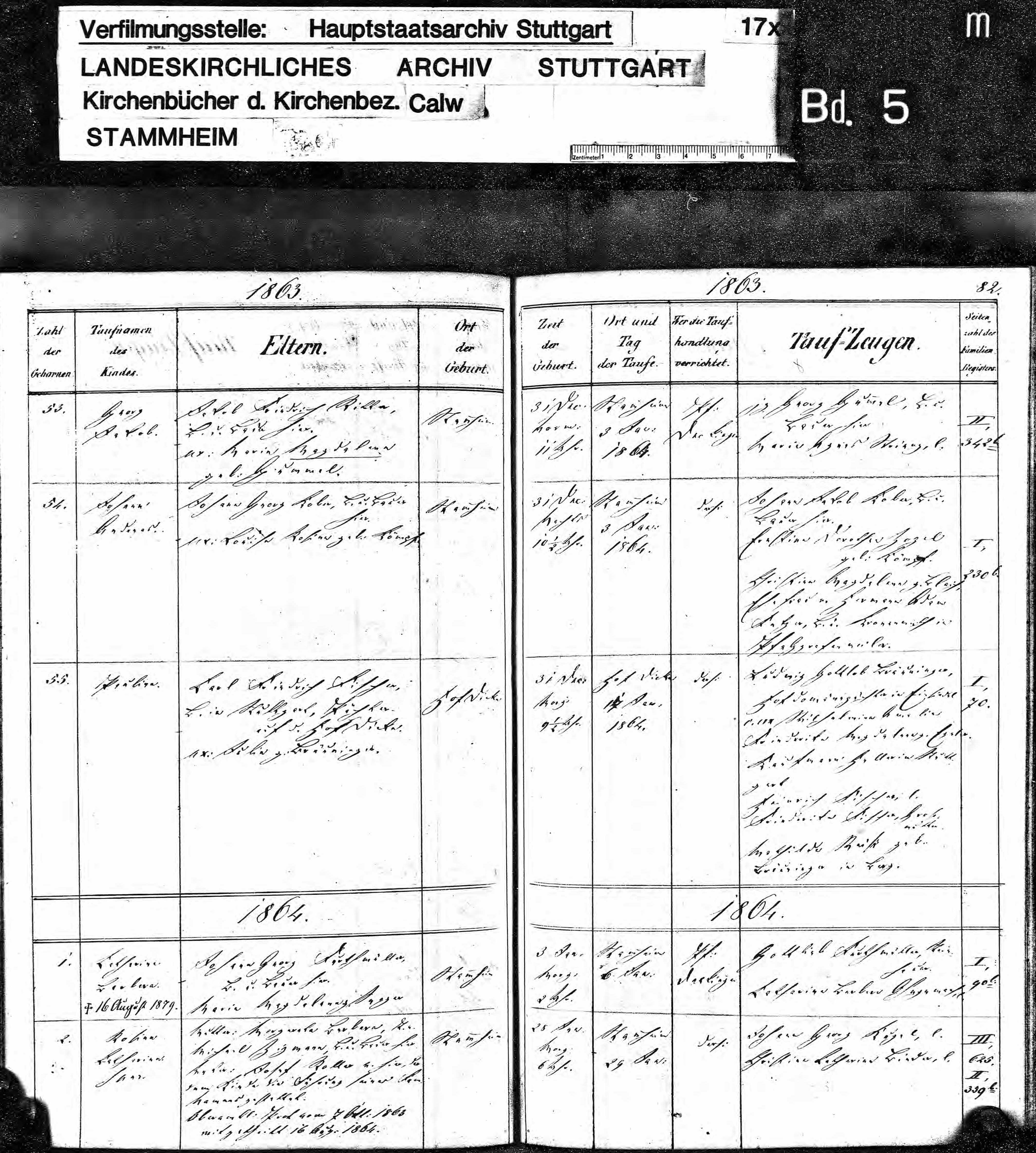 Geboren: 28 Jan. 1864 - Stammheim (OA. Calw), Württemberg, Germany Getauft: 29 Jan. 1864 - Evangelisch, Stammheim, Schwarzwaldkreis, Wuerttemberg Gestorben: 11 Nov. 1894 - Altdorf, Böblingen, Neckarkreis, Württemberg, Germany Bestattet: