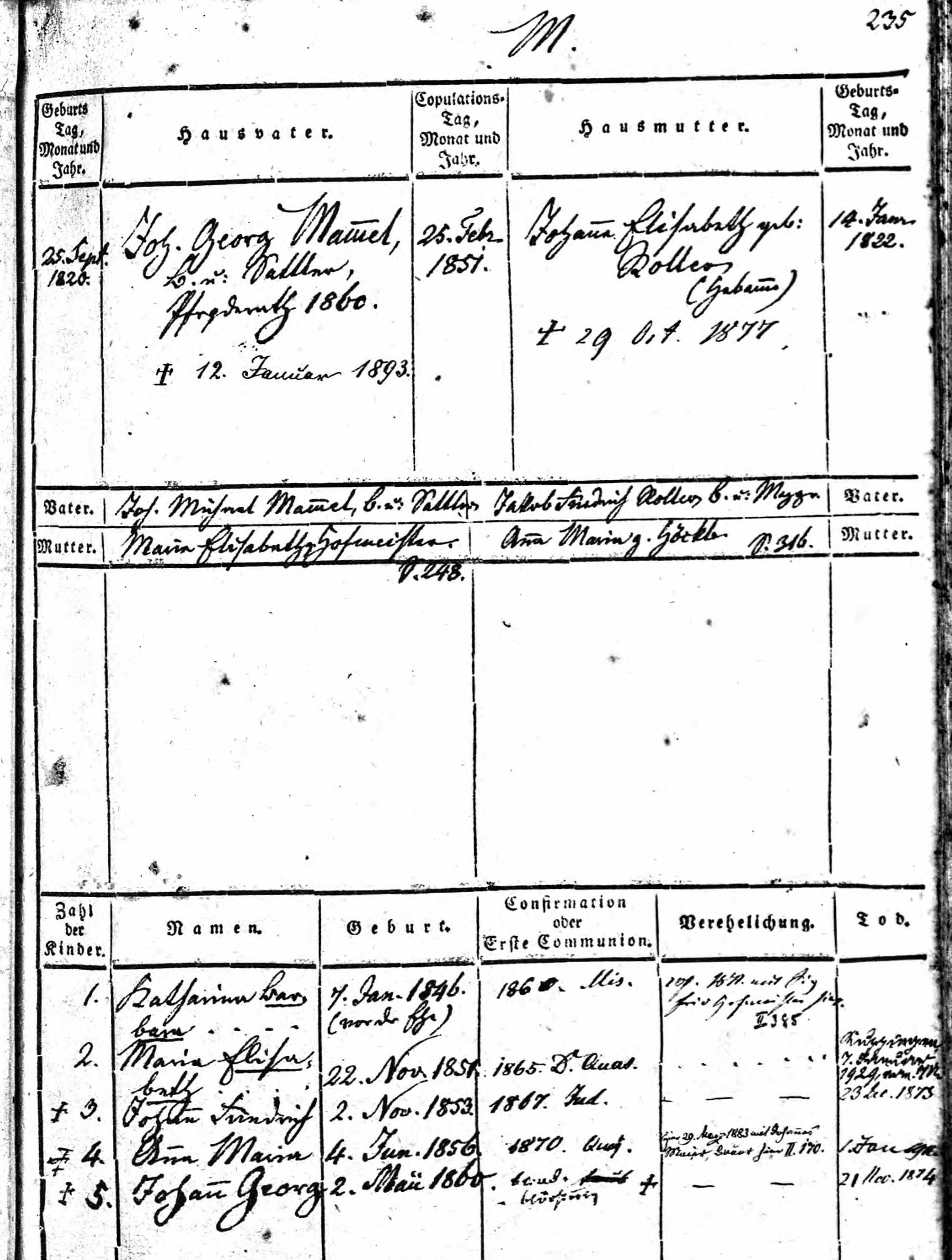 Geboren: 24 Jun. 1820 - Wildberg, Nagold, Deutschland Getauft: Gestorben: 24 Nov. 1866 - Wildberg, Nagold, Deutschland Bestattet: