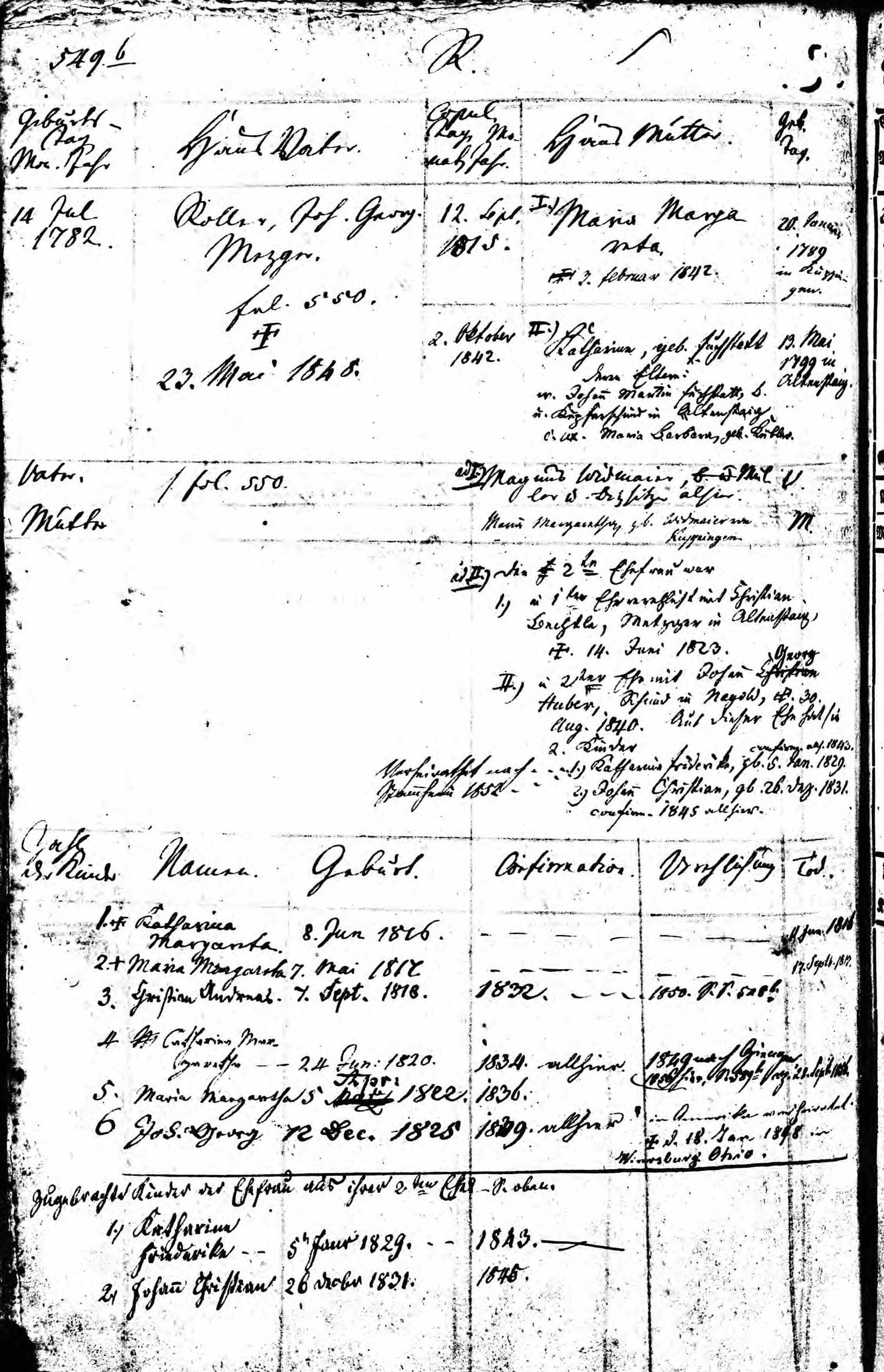 Vater: Johann Balthasar Roller Mutter: Anna Zotzel
