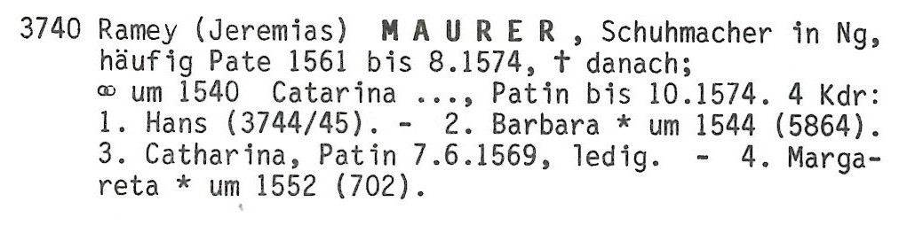 1. *Ramey Maurer Ehe: U. 1540 Kinder: 1. Barbara Maurer 2. Hans Maurer 3. Catharina Maurer 4. Margaretha MaurerMausch…