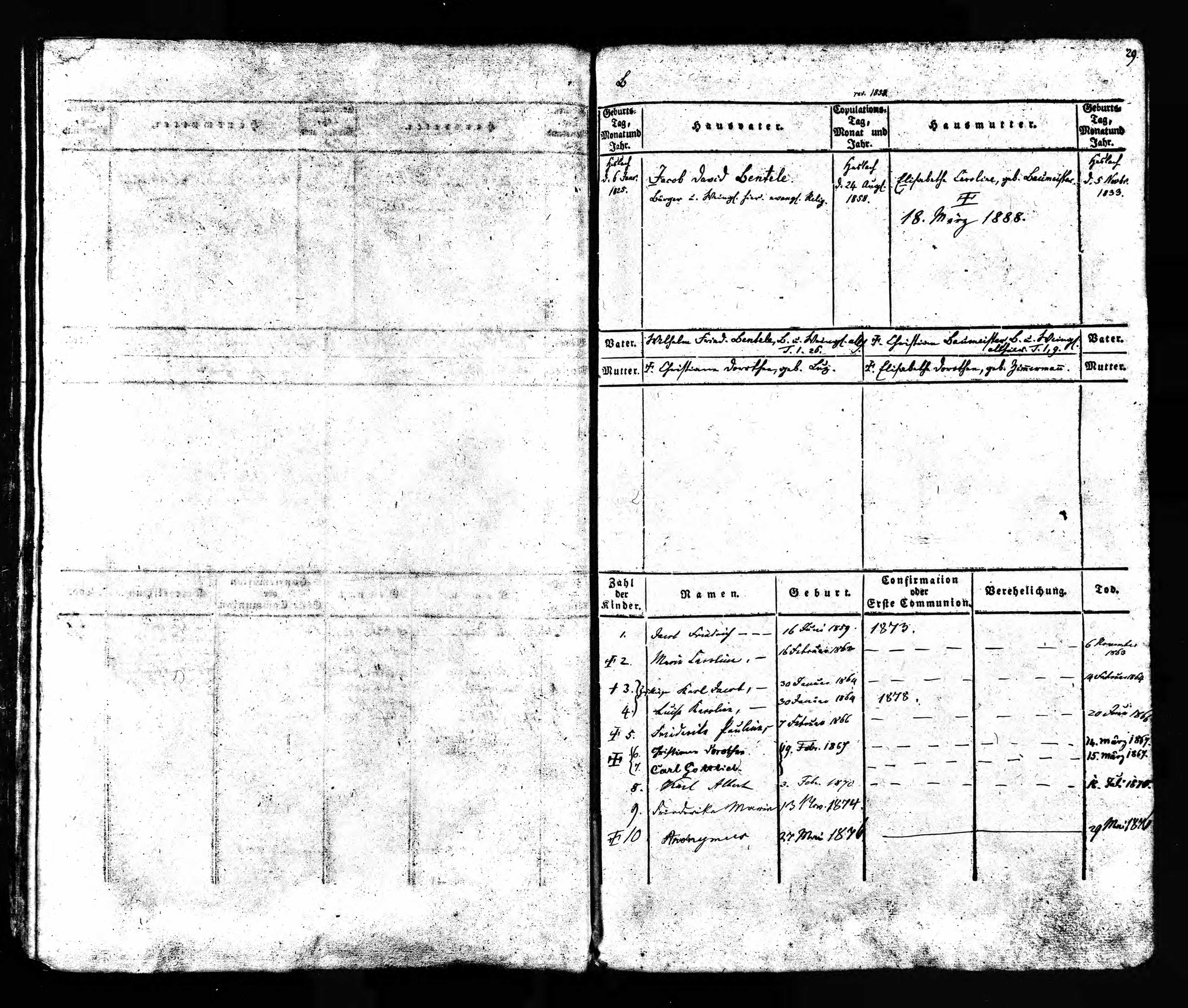 1. *Elisabetha Carolina Baumeister Ehe: 24 Aug. 1858 - Heslach, Stuttgart, Württemberg Kinder: 1. Jacob Friederich Bentele 2. Marie Carolina Bentele †¹ 3. Luisa Karolina Bentele 4. Friederika Paulina Bentele †° 5. Christiana Dorothea Bentele †° 6. Friederike Marie BenteleJacob Friederich Bentele