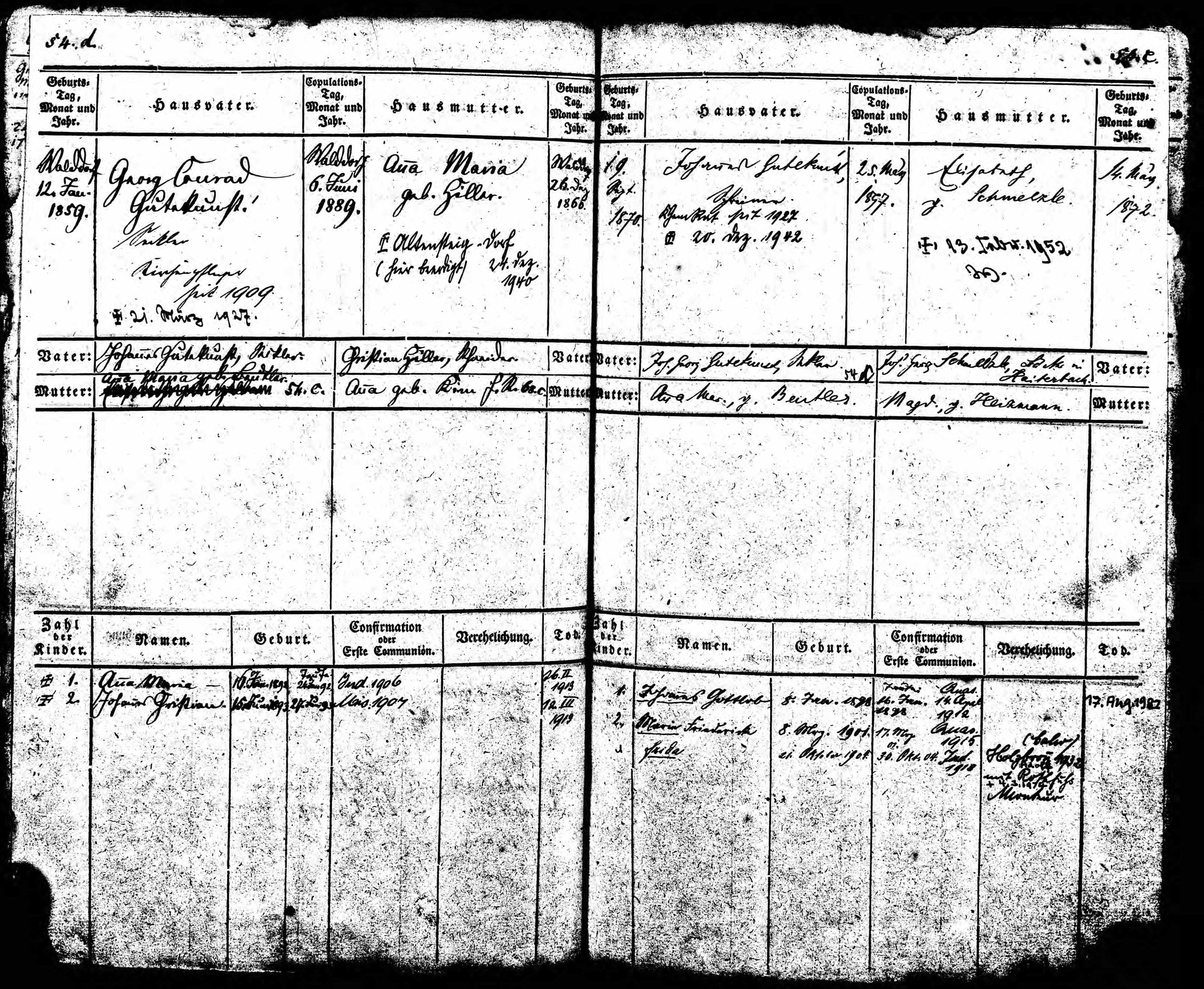 1. *Anna Maria Hiller Ehe: 6 Jun. 1889 - Walddorf, Nagold, Wuerttemberg, Schwarwald, Germany Kinder: 1. Anna Maria Gutekunst 2. Johann Christian GutekunstGeorg Friedrich Gutekunst †¹